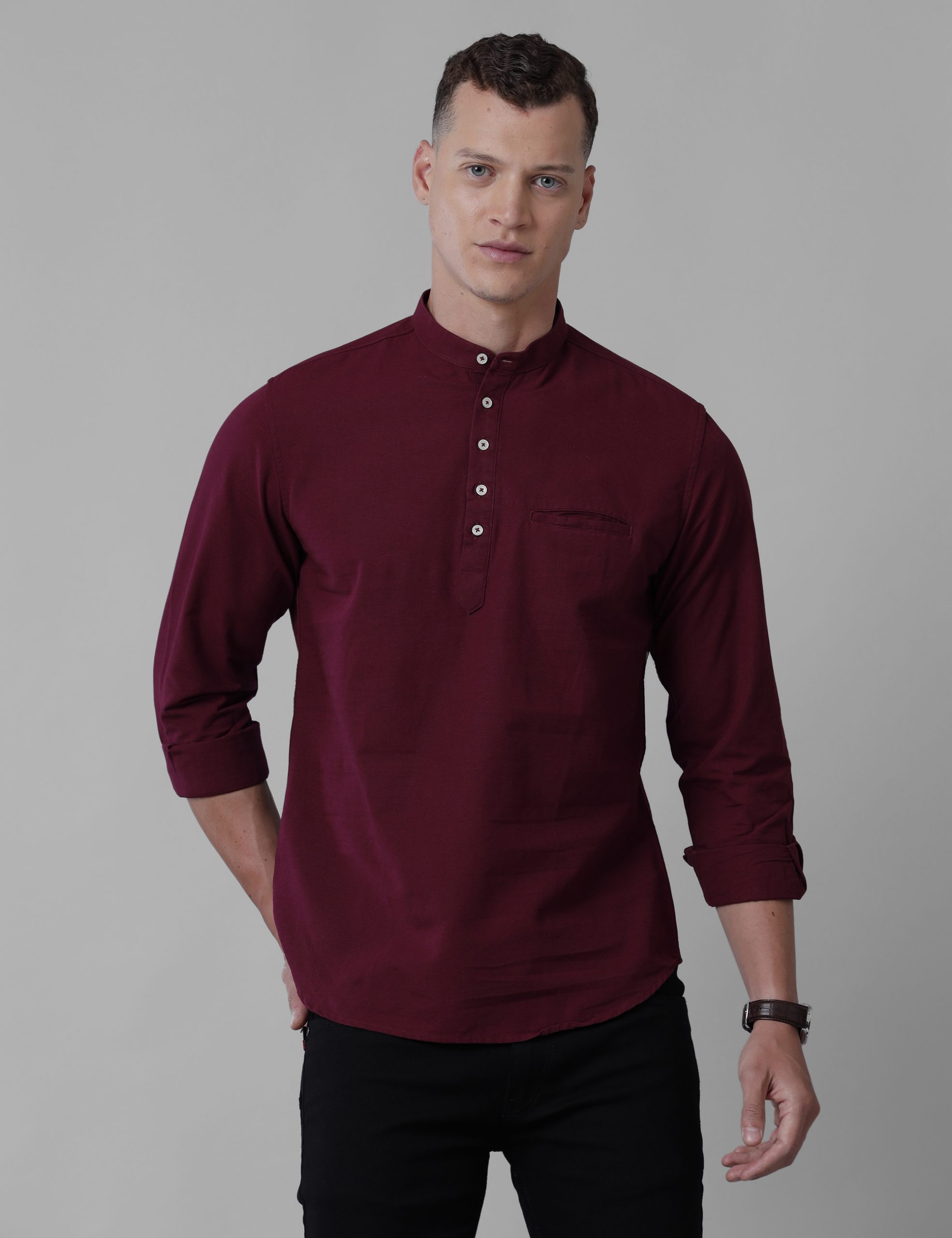Croydon UK Men's Maroon Nehru collar kurta quantity