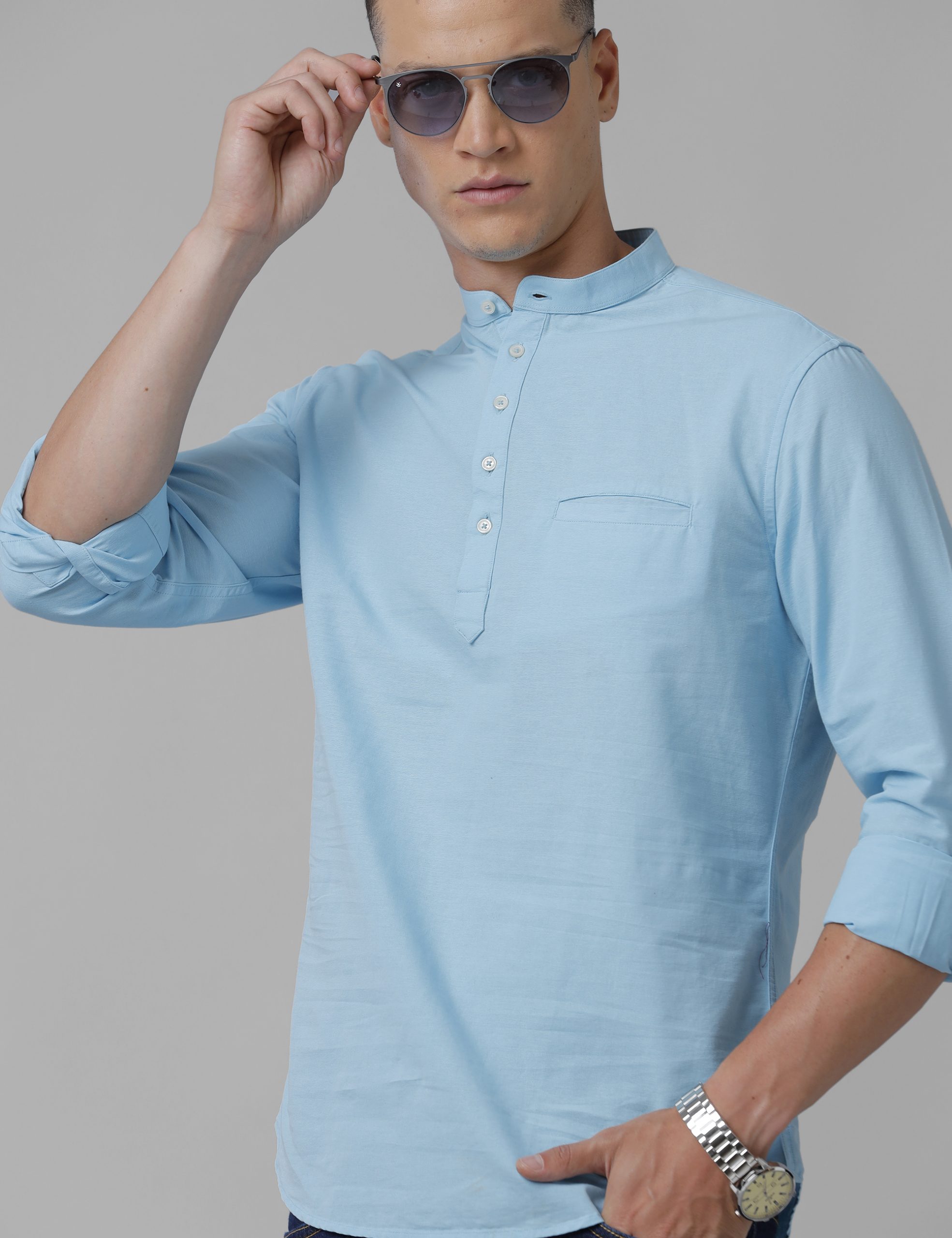 Croydon UK Men's sky blue nehru collar kurta quantity