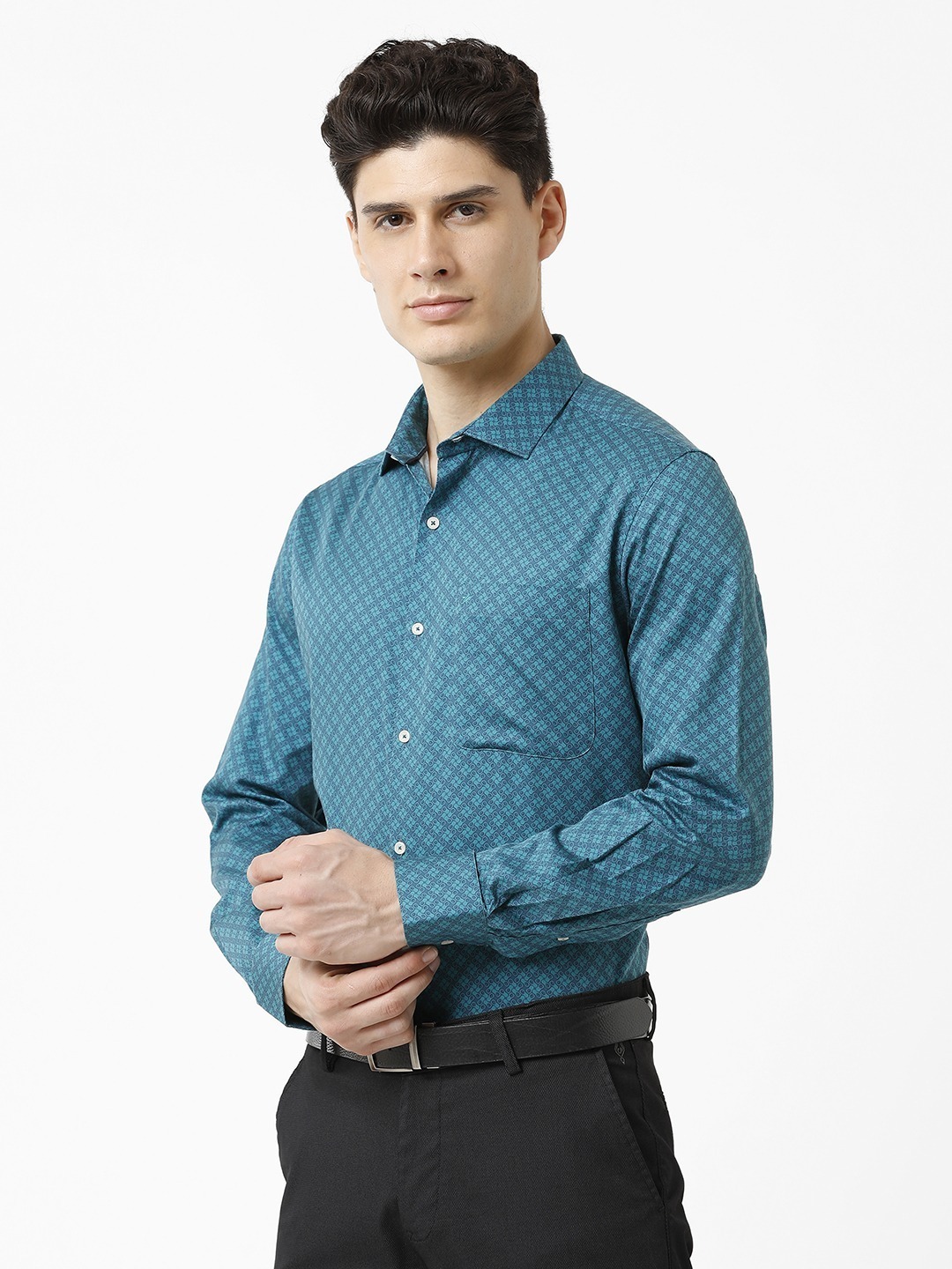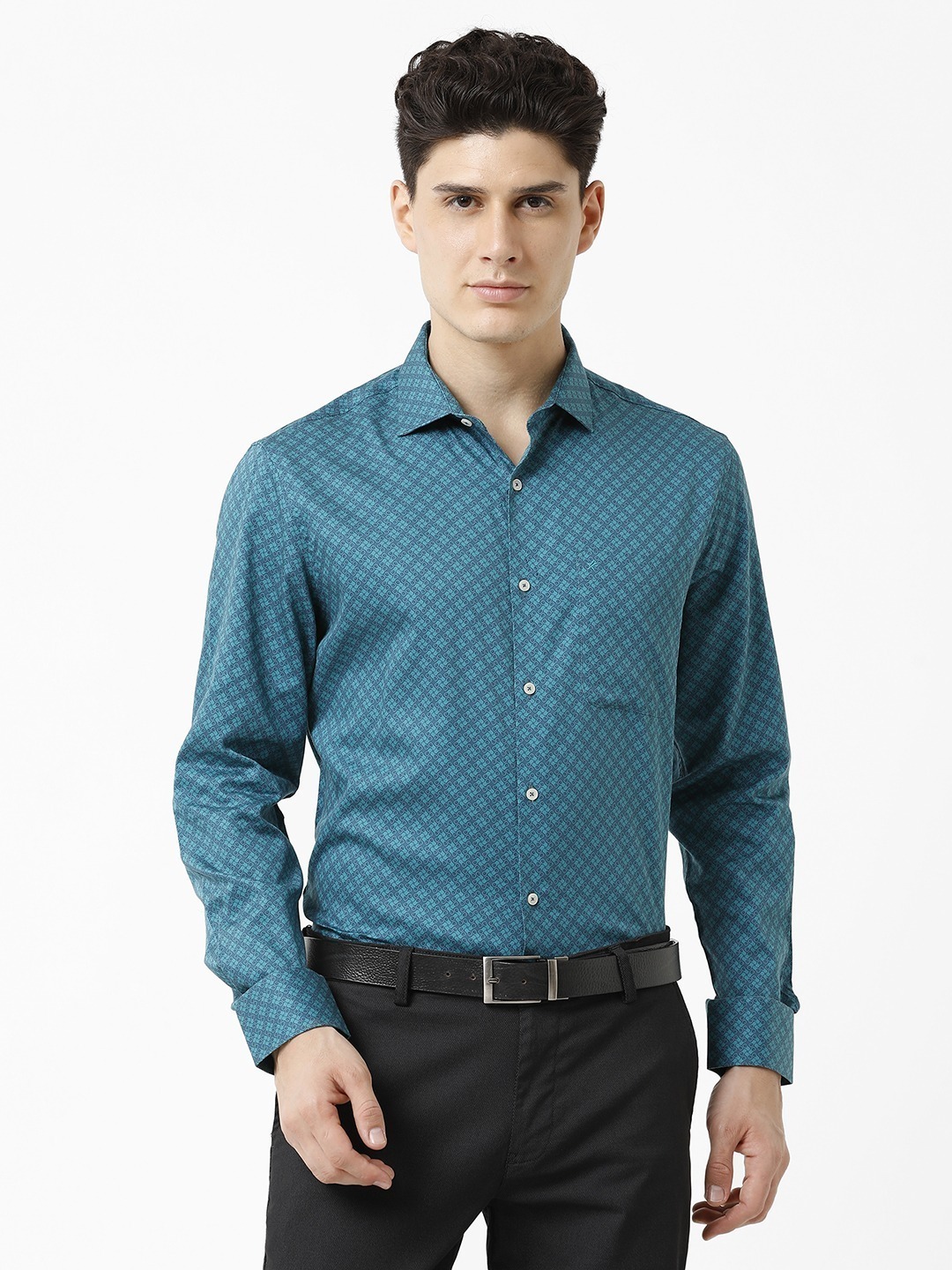 Croydon UK Men’s Teal Abstract Print Shirt