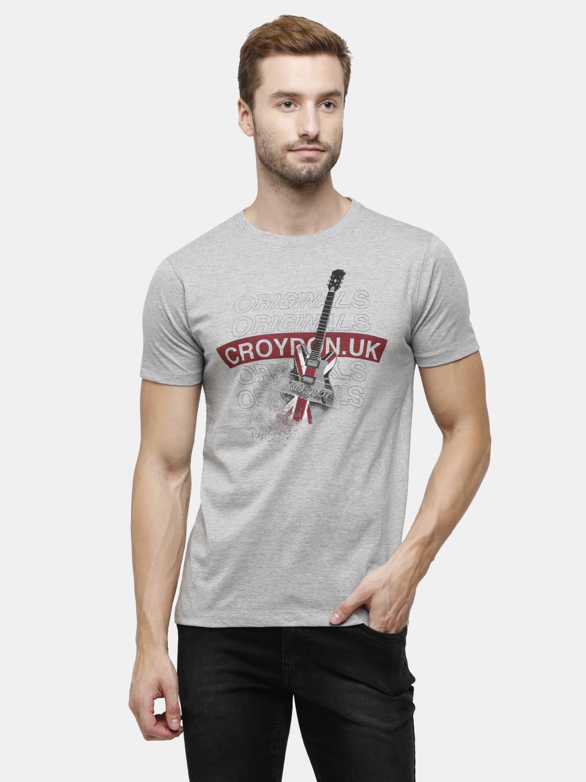 • Grey Crewneck T-Shirt Guitar Originals