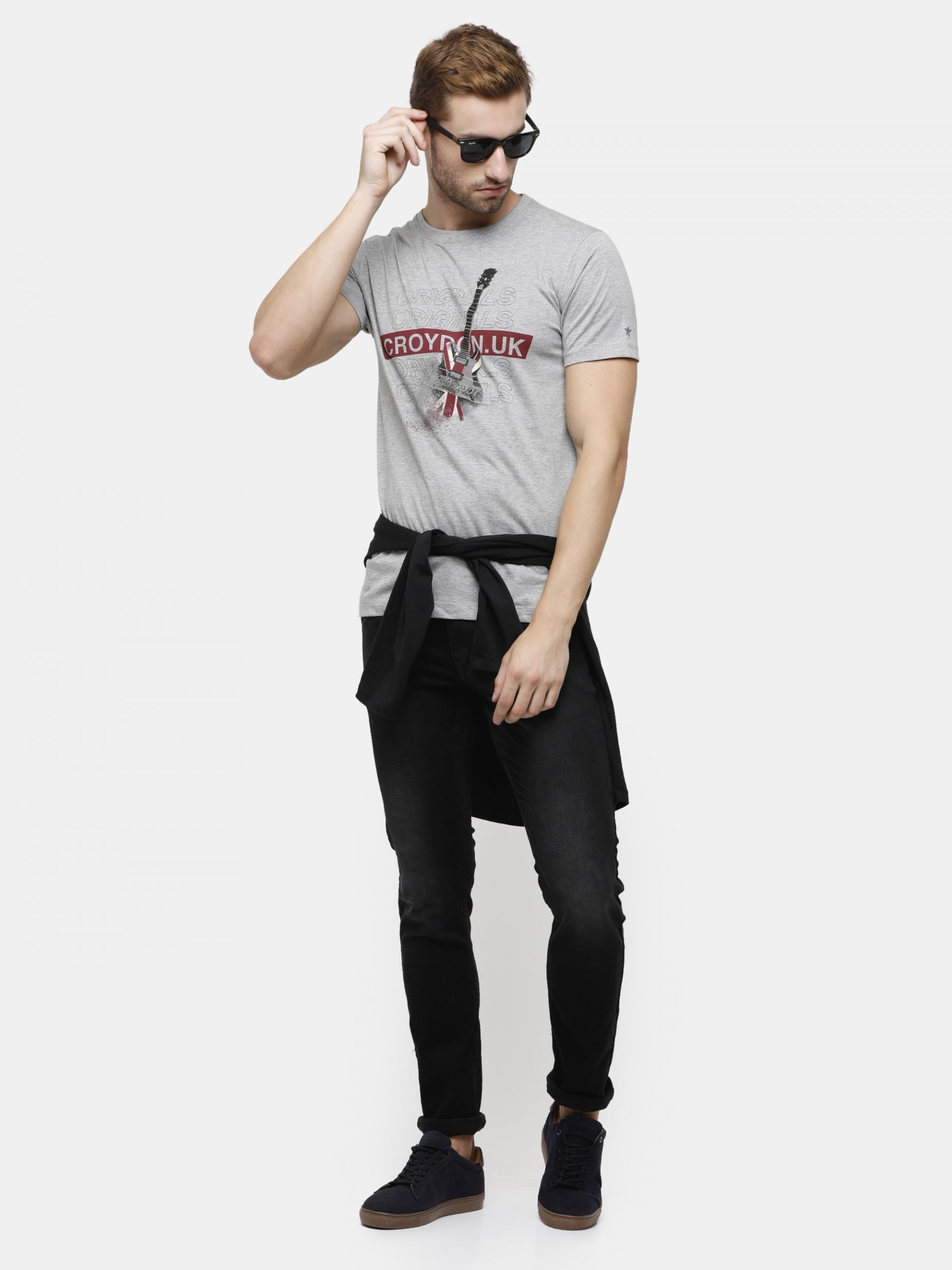 Grey Crewneck T-Shirt Guitar Originals