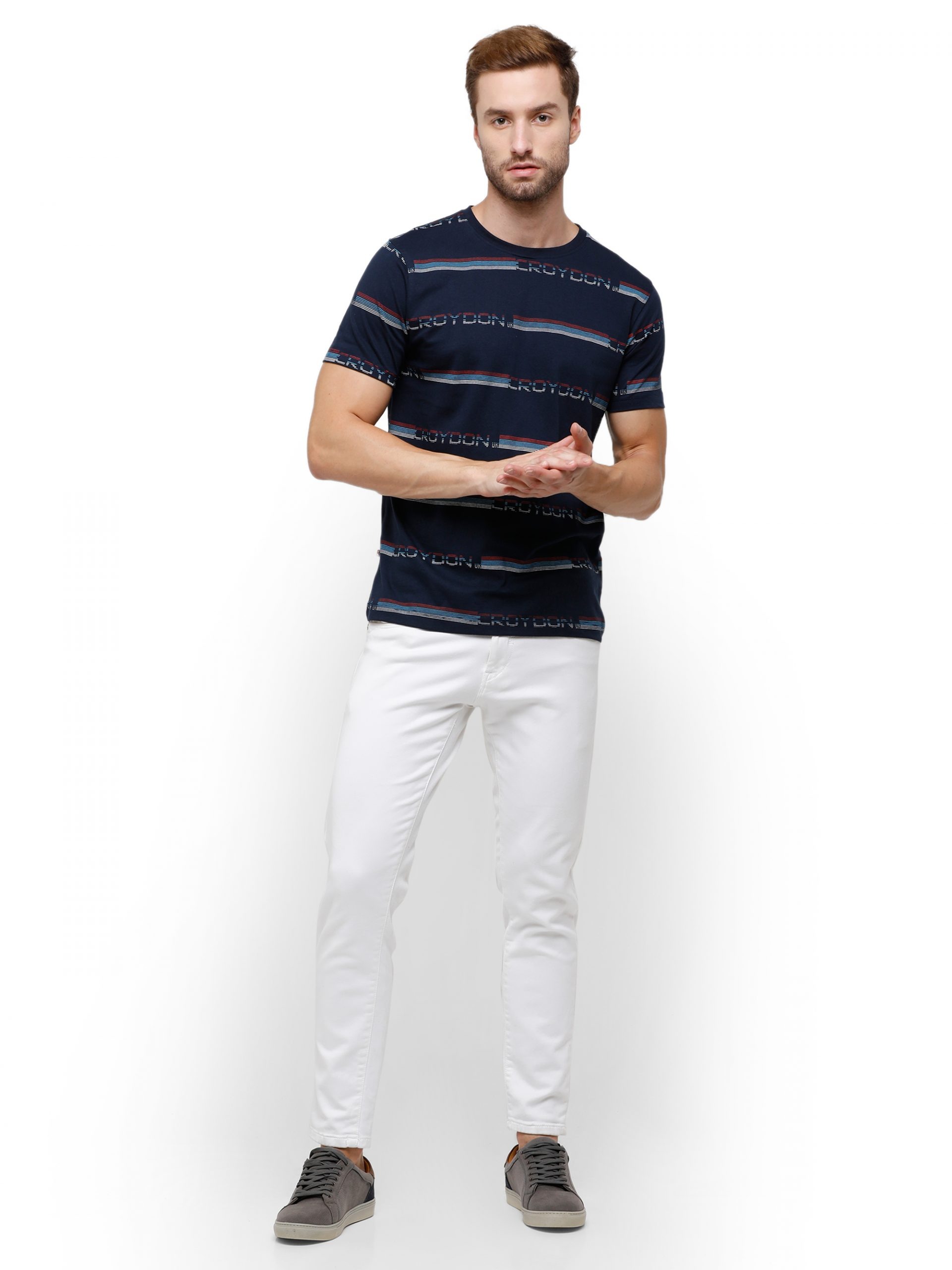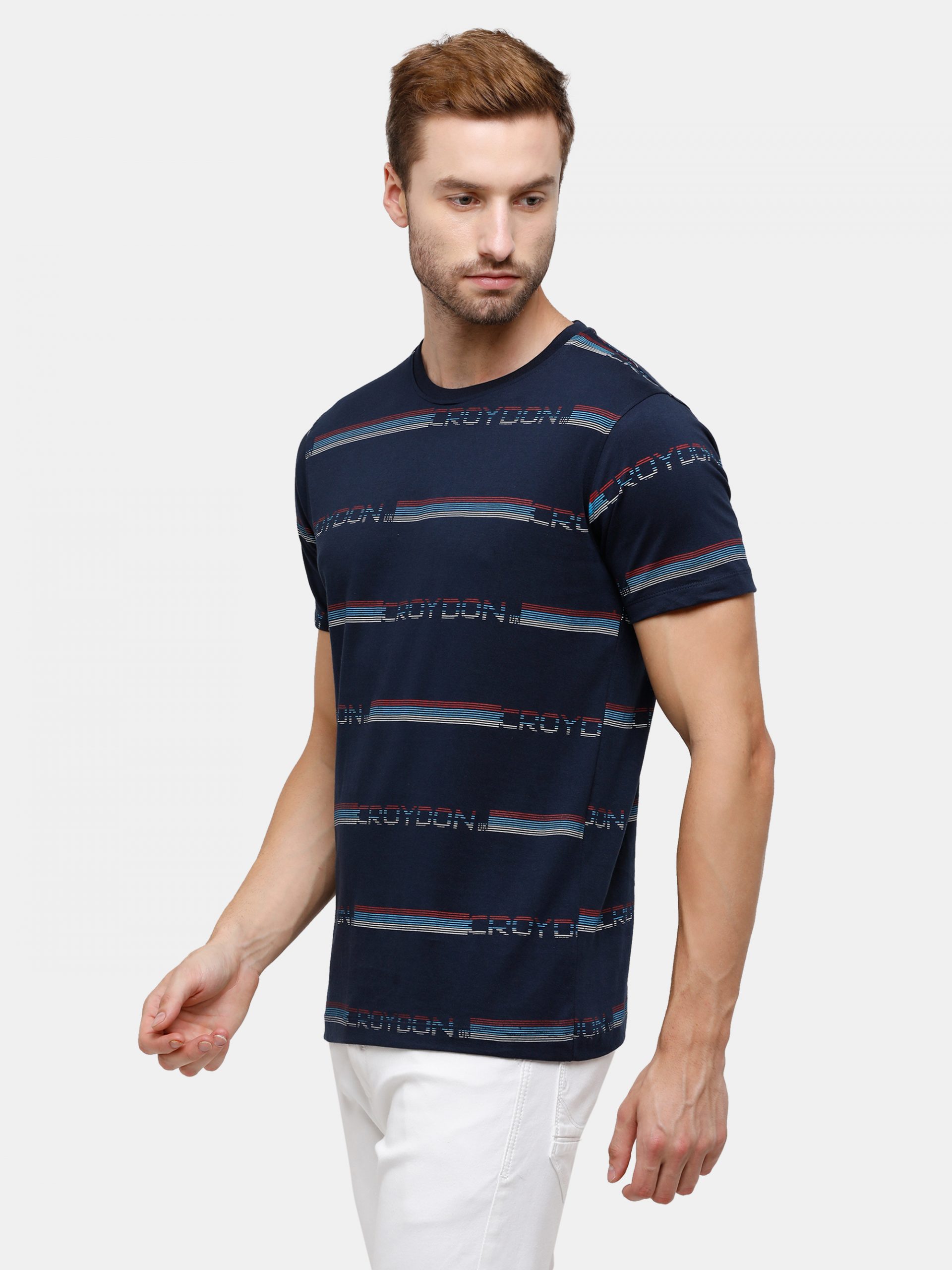• Navy Crewneck T-Shirt Striped Print Croydon UK