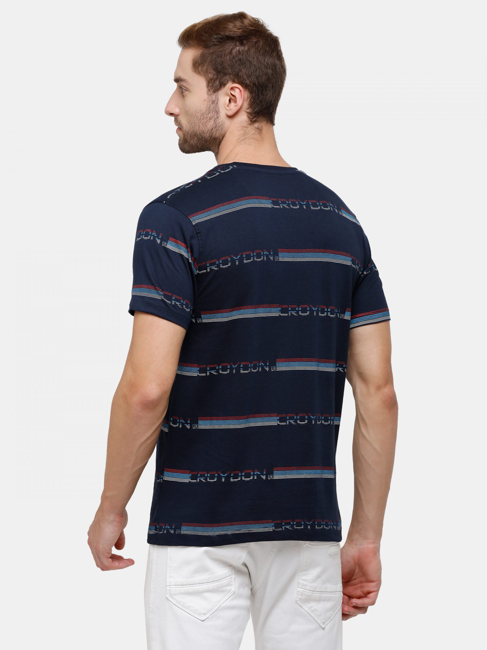 Navy Crewneck T-Shirt Striped Print Croydon UK