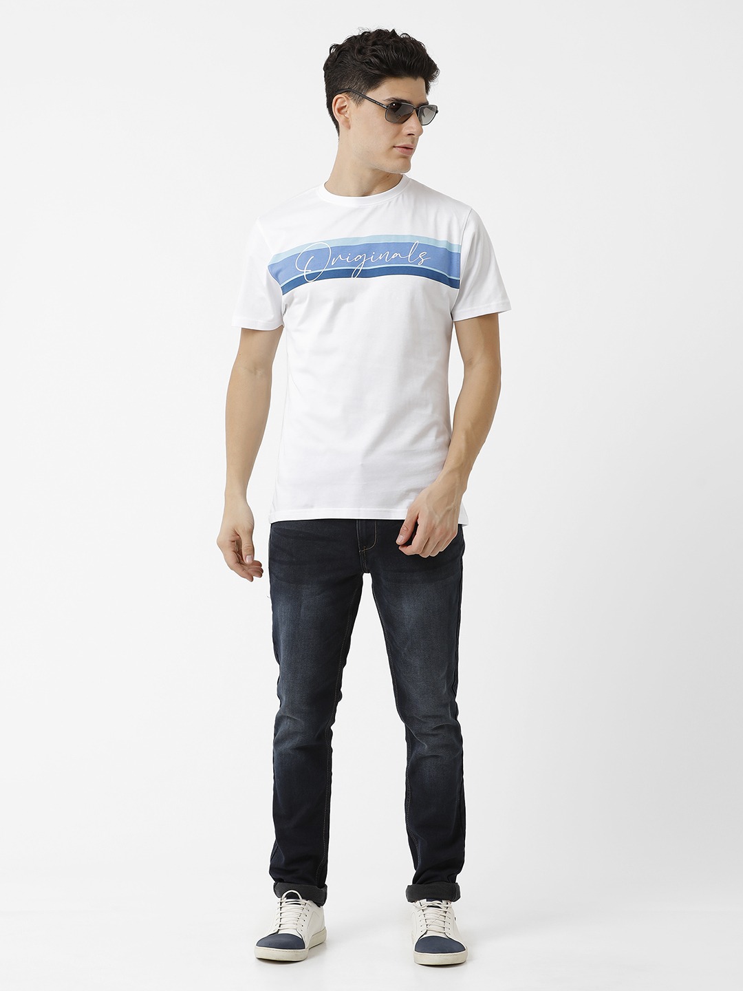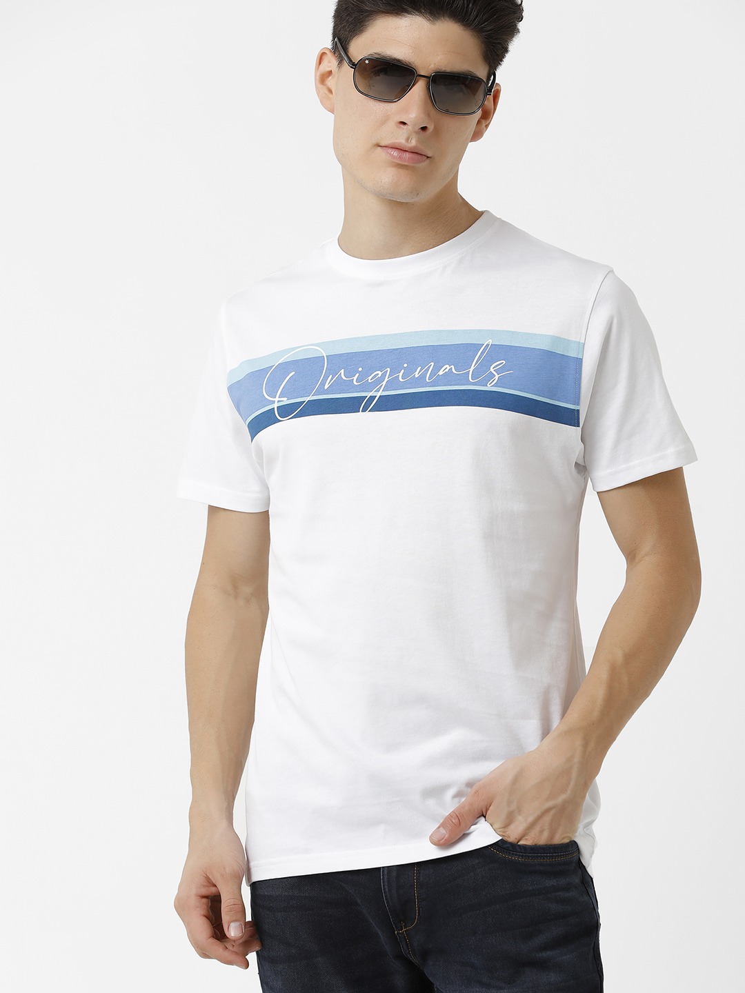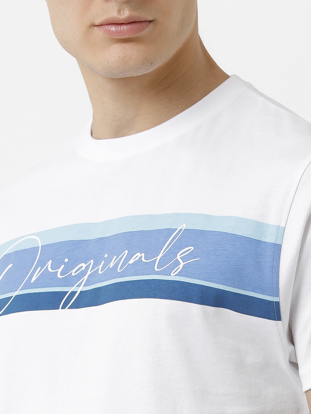 Originals Blue Stripe Crewneck T-Shirt – White